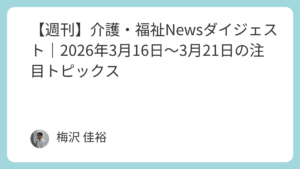 - 【週刊】介護・福祉Newsダイジェスト|2026年3月16日~3月21日の注目トピックス