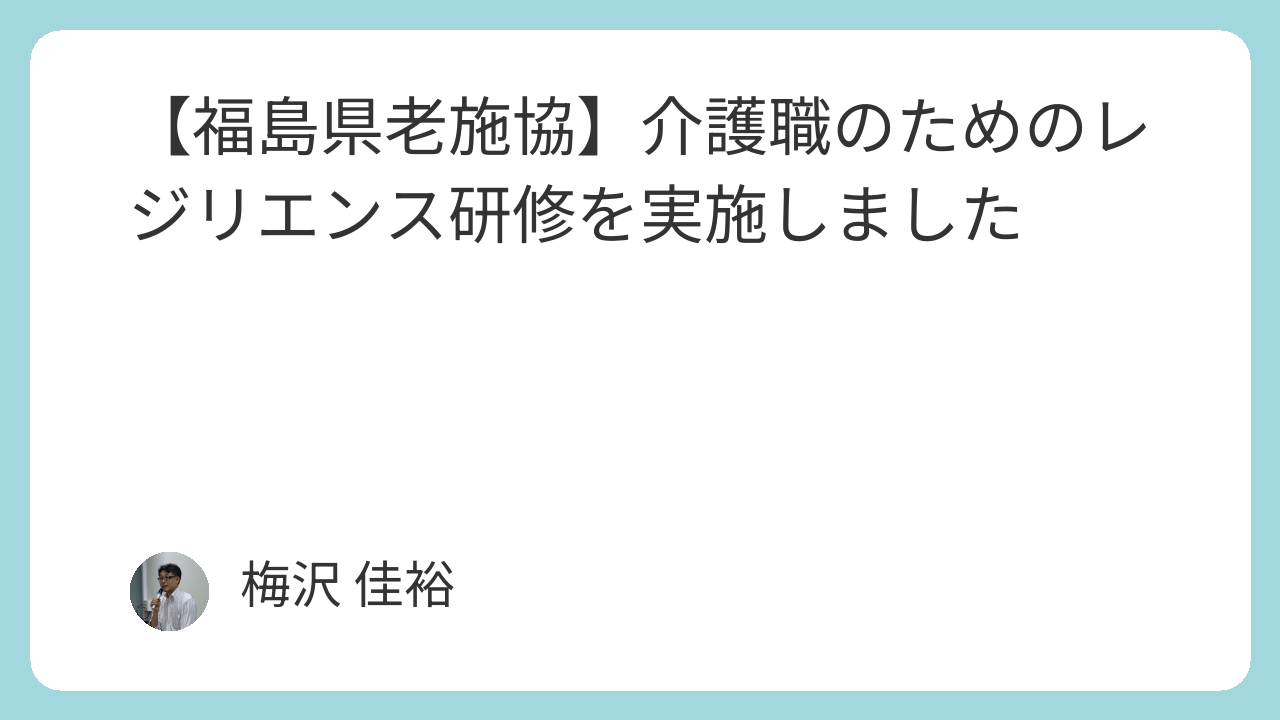 ■テーマ:介護職のためのレジリエンス~折れない心の育て方