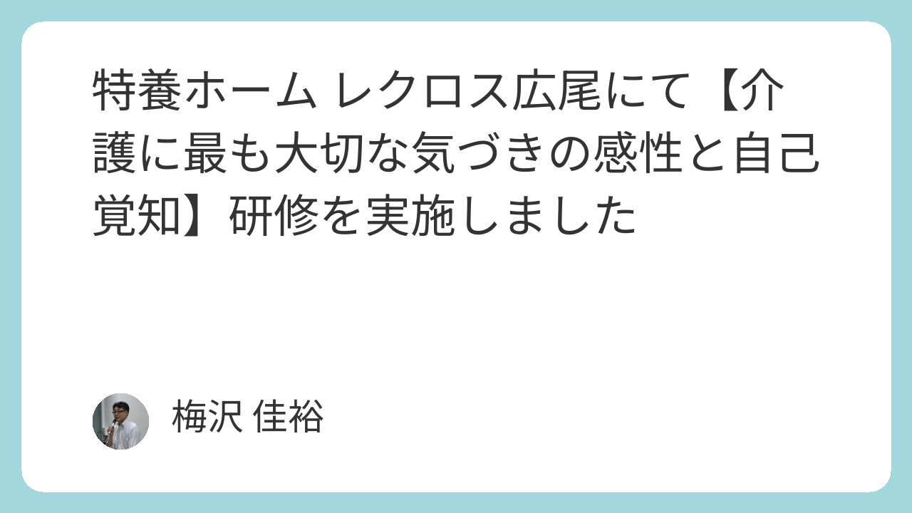 「介護に最も大切な気づきの感性と自己覚知」をテーマに研修を実施|特養ホームレクロス広尾様