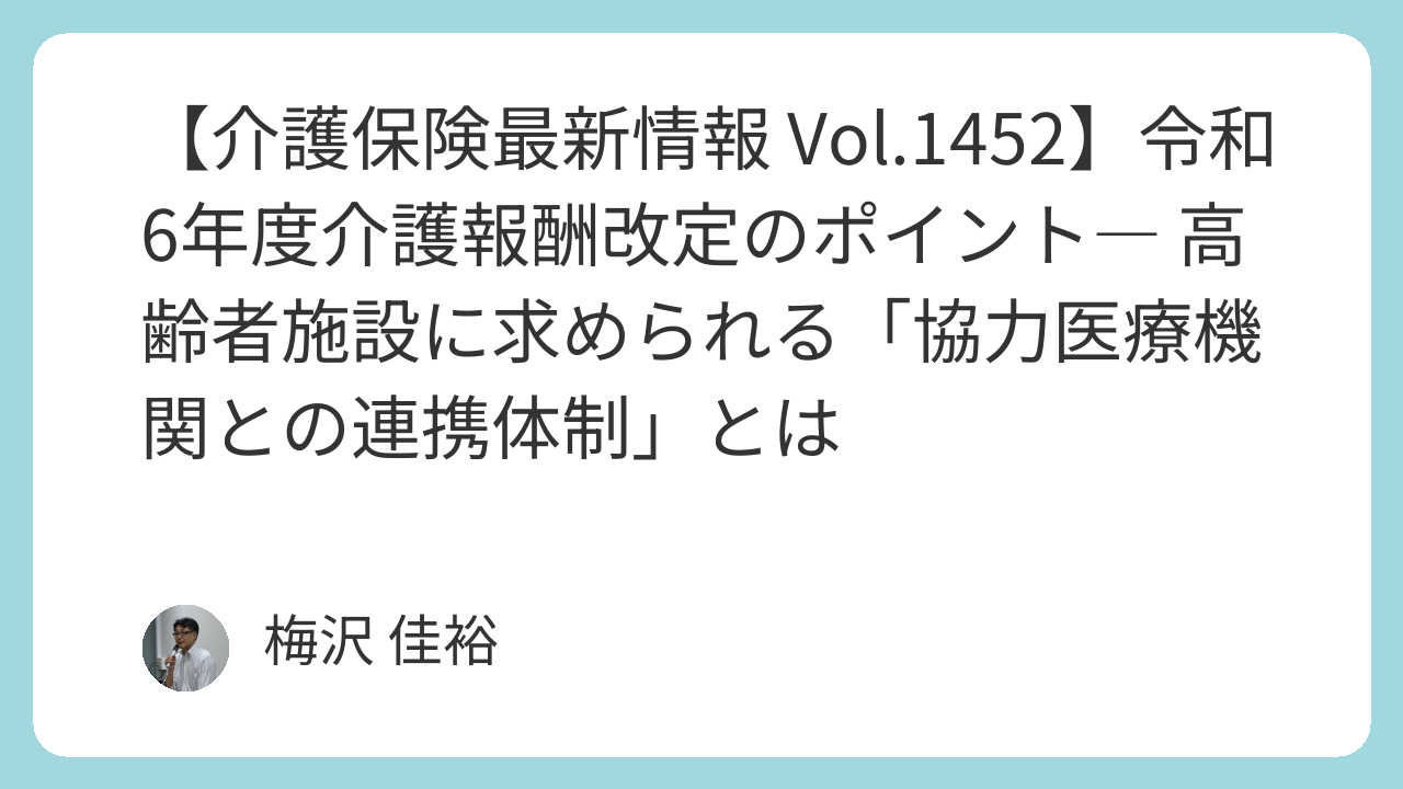 - 令和6年度介護報酬改定を踏まえた高齢者施設等と協力医療機関との連携状況について(介護保険最新情報 Vol.1452・厚生労働省PDF)