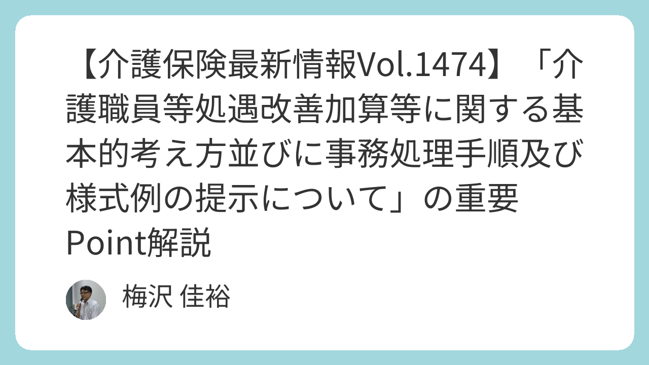 【介護保険最新情報Vol.1474】「介護職員等処遇改善加算等に関する基本的考え方並びに事務処理手順及び様式例の提示について」の重要Point解説