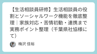 【生活相談員研修】生活相談員の役割とソーシャルワーク機能を徹底整理|家族対応・苦情初動・連携まで実務ポイント整理(千葉県社協様にて)