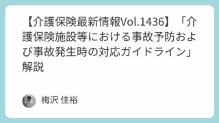 13.介護保険最新情報・ニュースまとめ 【介護保険最新情報Vol.1436】「介護保険施設等における事故予防および事故発生時の対応ガイドライン」解説 介護保険最新情報Vol.1436を徹底解説。事故予防ガイドラインの改訂内容をわかりやすく整理。介護施設・通所・住宅系まで使える安全管理の実践手引き。 2025.11.12 13.介護保険最新情報・ニュースまとめ