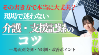 食事介助の介護記録・支援記録の書き方を、観察ポイント、【高齢者】【障害者】別の文例、NG例と修正例を交えて解説します。新人職員にも分かりやすく、現場でそのまま使える実務記事です。