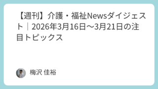 福祉制度・介護保険の最新情報ニュース 【週刊】介護・福祉Newsダイジェスト|2026年3月16日~3月21日の注目トピックス 2026年3月16日~3月21日に発信された介護・福祉分野の注目ニュースを横断的に整理。Joint、シルバー新報、福祉新聞、シルバー産業新聞、WAMNETをもとに、処遇改善加算、介護人材、介護情報基盤、障害福祉の動きをわかりやすく紹介します。 2026.03.25 福祉制度・介護保険の最新情報ニュース